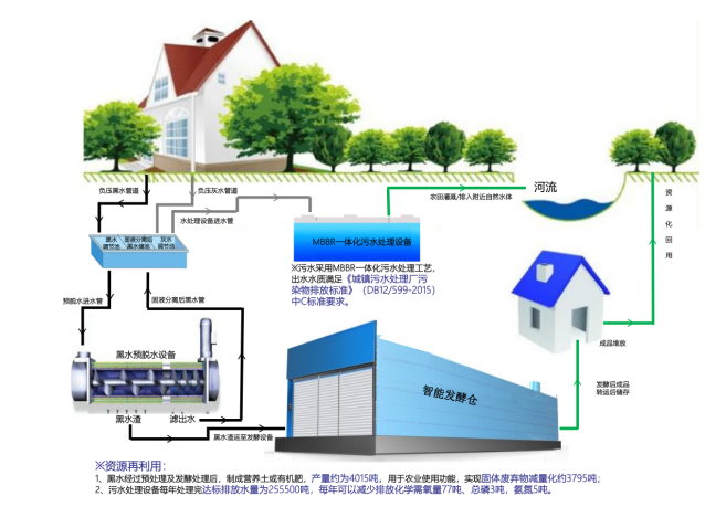 新建入戶收集污水系統(tǒng)、收集中心、處理中心和堆肥廠。